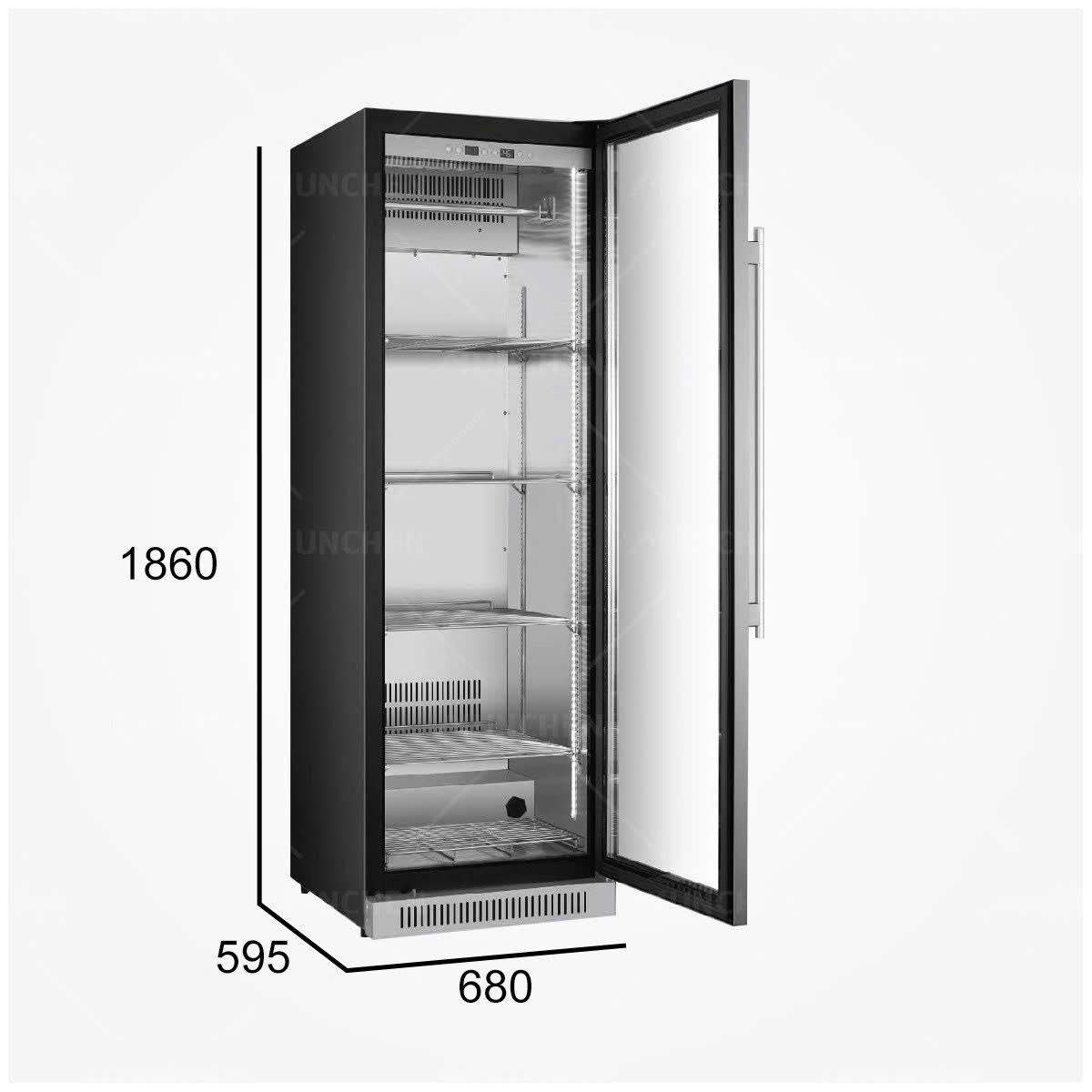 Tủ ủ thịt, tủ lên tuổi cho thịt Munchen Dry Aging là thiết bị chuyên dụng dùng để kiểm soát và duy trì môi trường tối ưu về nhiệt độ, độ ẩm, độ lưu thông không khí nhằm phục vụ quá trình ủ, lên men hoặc làm chín thịt theo phương pháp tự nhiên. Khác với các cách ủ truyền thống như ủ khô bằng nắng, ủ ướt trong tủ mát thông thường hay treo gió ngoài trời, tủ ủ thịt công nghiệp cho phép người dùng kiểm soát hoàn toàn các thông số kỹ thuật, giúp đảm bảo độ đồng đều, vệ sinh an toàn thực phẩm và chất lượng thành phẩm ổn định theo từng mẻ.Thiết bị này được thiết kế để phục vụ đa dạng nhu cầu chế biến như: ủ thịt bò khô, làm dry-aged beef (bò ủ khô cao cấp), ủ salami, xúc xích hun khói, lạp xưởng, thịt nguội… tích hợp công nghệ lọc khí, khử khuẩn UV và hệ thống cảm biến thông minh, phù hợp với các tiêu chuẩn khắt khe trong ngành thực phẩm. Tủ ủ thịt công nghiệp không chỉ là thiết bị mà còn là một phần quan trọng trong chuỗi giá trị sản phẩm, đặc biệt với các đơn vị hướng tới chất lượng cao và giá trị gia tăng bền vững. Cấu tạo tủ ủ thịt