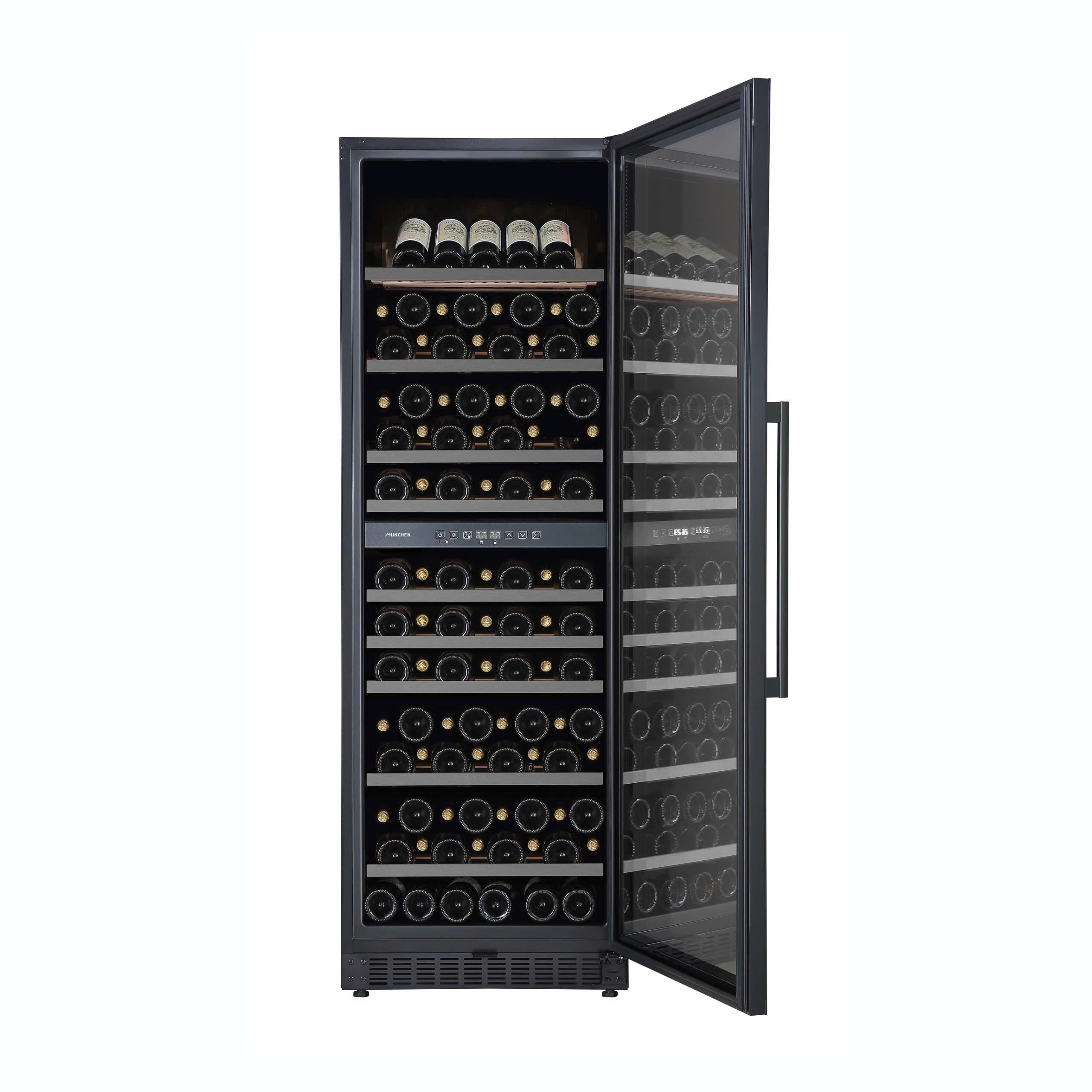 Tủ bảo quản vang chuyên dụng Munchen sẽ giúp bạn kiểm soát nhiệt độ. Nhiệt độ bảo quản lý tưởng cho rượu là từ 50 °F đến 60 °F ( 10°C đến 15°C ) ; nhiệt độ này ấm hơn phạm vi nhiệt độ của tủ lạnh thông thường (đủ lạnh để ngăn ngừa phần lớn, nếu có, quá trình lão hóa) và mát hơn nhiệt độ môi trường xung quanh của hầu hết các ngôi nhà (dao động ở mức 75 °F hoặc cao hơn). Nhiệt độ sau quá nóng để bảo quản rượu trong thời gian dài. Nhiệt độ trên 70 °F có thể "nấu chín" rượu, tạo ra hương vị nhạt, đục hoặc mất mùi. Tầng hầm hoặc phòng mát luôn duy trì ở nhiệt độ từ 50 °F đến 60 °F (PDF) có thể hoạt động như một nơi bảo quản, nhưng điều kiện quá ẩm ướt có thể thúc đẩy nấm mốc phát triển và làm hỏng nhãn rượu. Nhiệt độ thay đổi cũng không tốt cho rượu. Khi rượu nóng lên hoặc nguội đi, chất lỏng và nút bần có thể giãn nở và co lại. Nút bần có thể bị đẩy ra ngoài, gây rò rỉ. Nó cũng có thể co lại và cho không khí vào trong chai, gây ra quá trình oxy hóa. Vì vậy, ví dụ, nếu bạn sống ở nơi nóng và bạn tắt điều hòa khi ra ngoài, tủ lạnh rượu có thể bảo vệ chống lại sự thay đổi nhiệt độ. Một số tủ lạnh rượu có cấu trúc hai vùng - hai ngăn khác nhau để giữ rượu vang đỏ hoặc trắng hoặc các loại rượu vang khác ở nhiệt độ phục vụ phù hợp .