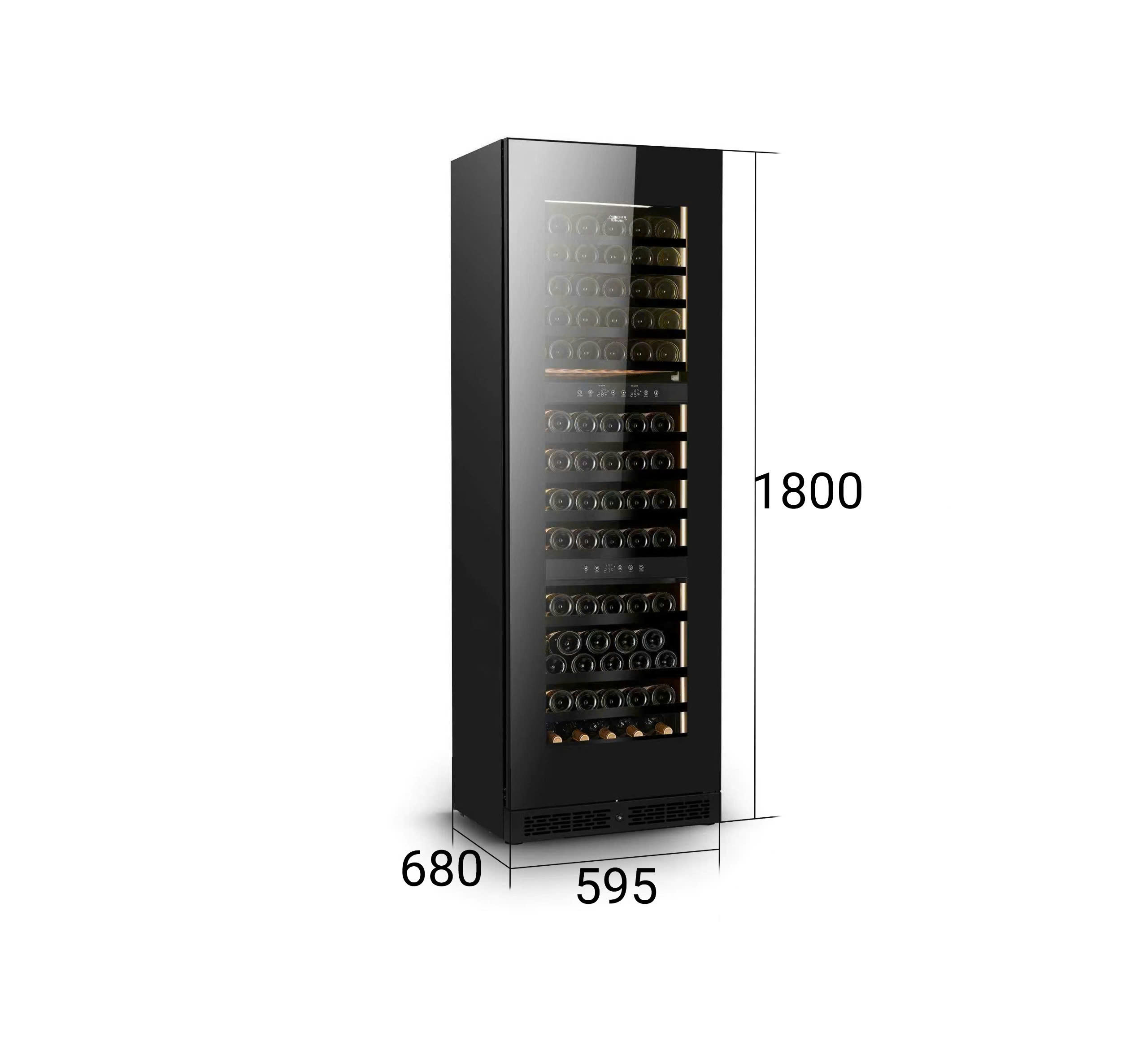Tủ bảo quản vang chuyên dụng Munchen sẽ giúp bạn kiểm soát nhiệt độ. Nhiệt độ bảo quản lý tưởng cho rượu là từ 50 °F đến 60 °F ( 10°C đến 15°C ) ; nhiệt độ này ấm hơn phạm vi nhiệt độ của tủ lạnh thông thường (đủ lạnh để ngăn ngừa phần lớn, nếu có, quá trình lão hóa) và mát hơn nhiệt độ môi trường xung quanh của hầu hết các ngôi nhà (dao động ở mức 75 °F hoặc cao hơn). Nhiệt độ sau quá nóng để bảo quản rượu trong thời gian dài. Nhiệt độ trên 70 °F có thể "nấu chín" rượu, tạo ra hương vị nhạt, đục hoặc mất mùi. Tầng hầm hoặc phòng mát luôn duy trì ở nhiệt độ từ 50 °F đến 60 °F (PDF) có thể hoạt động như một nơi bảo quản, nhưng điều kiện quá ẩm ướt có thể thúc đẩy nấm mốc phát triển và làm hỏng nhãn rượu. Nhiệt độ thay đổi cũng không tốt cho rượu. Khi rượu nóng lên hoặc nguội đi, chất lỏng và nút bần có thể giãn nở và co lại. Nút bần có thể bị đẩy ra ngoài, gây rò rỉ. Nó cũng có thể co lại và cho không khí vào trong chai, gây ra quá trình oxy hóa. Vì vậy, ví dụ, nếu bạn sống ở nơi nóng và bạn tắt điều hòa khi ra ngoài, tủ lạnh rượu có thể bảo vệ chống lại sự thay đổi nhiệt độ. Một số tủ lạnh rượu có cấu trúc hai vùng - hai ngăn khác nhau để giữ rượu vang đỏ hoặc trắng hoặc các loại rượu vang khác ở nhiệt độ phục vụ phù hợp .