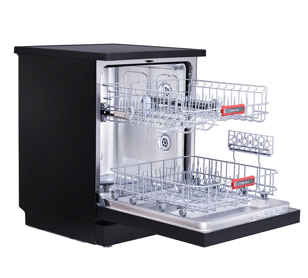 Máy có tất cả 2 khoang rửa lớn kèm giỏ giá để đựng đũa thìa..., mỗi khoang đều có cánh quạt riêng nên bát đũa sẽ được rửa một cách triệt để. Munchen còn được trang bị Aqua-Stop, tự động động phát hiện và ngăn ngừa sự rò rỉ. Hệ thống Eco-Sensor tái sử dụng giúp tiết kiệm 20% lượng nước, 40% năng lượng và thời gian, với kích thước nhỏ gọn này bạn có thể đặt máy ở mọi vị trí trong phòng.