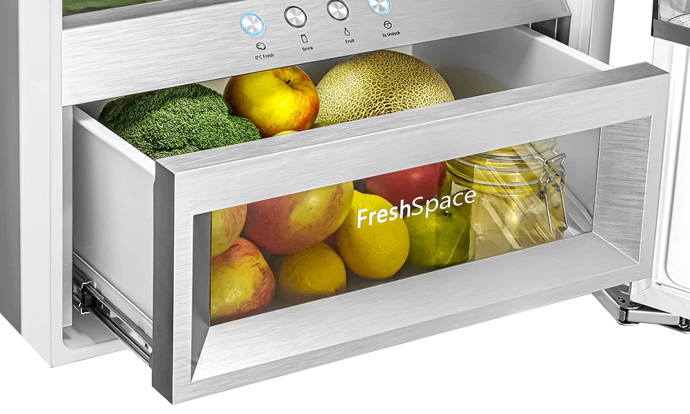 Tủ đông đáy tiết kiệm năng lượng, tủ đông phía dưới giúp dễ dàng tiếp cận hàng hóa đông lạnh với các ngăn kéo rộng rãi, ngăn nắp.