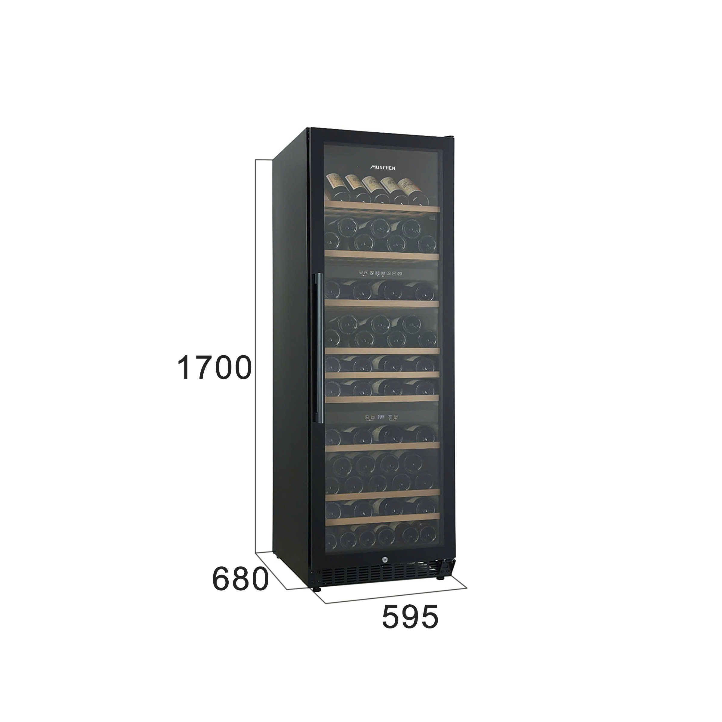 Tủ bảo quản vang chuyên dụng Munchen sẽ giúp bạn kiểm soát nhiệt độ. Nhiệt độ bảo quản lý tưởng cho rượu là từ 50 °F đến 60 °F ( 10°C đến 15°C ) ; nhiệt độ này ấm hơn phạm vi nhiệt độ của tủ lạnh thông thường (đủ lạnh để ngăn ngừa phần lớn, nếu có, quá trình lão hóa) và mát hơn nhiệt độ môi trường xung quanh của hầu hết các ngôi nhà (dao động ở mức 75 °F hoặc cao hơn). Nhiệt độ sau quá nóng để bảo quản rượu trong thời gian dài. Nhiệt độ trên 70 °F có thể "nấu chín" rượu, tạo ra hương vị nhạt, đục hoặc mất mùi. Tầng hầm hoặc phòng mát luôn duy trì ở nhiệt độ từ 50 °F đến 60 °F (PDF) có thể hoạt động như một nơi bảo quản, nhưng điều kiện quá ẩm ướt có thể thúc đẩy nấm mốc phát triển và làm hỏng nhãn rượu. Nhiệt độ thay đổi cũng không tốt cho rượu. Khi rượu nóng lên hoặc nguội đi, chất lỏng và nút bần có thể giãn nở và co lại. Nút bần có thể bị đẩy ra ngoài, gây rò rỉ. Nó cũng có thể co lại và cho không khí vào trong chai, gây ra quá trình oxy hóa. Vì vậy, ví dụ, nếu bạn sống ở nơi nóng và bạn tắt điều hòa khi ra ngoài, tủ lạnh rượu có thể bảo vệ chống lại sự thay đổi nhiệt độ. Một số tủ lạnh rượu có cấu trúc hai vùng - hai ngăn khác nhau để giữ rượu vang đỏ hoặc trắng hoặc các loại rượu vang khác ở nhiệt độ phục vụ phù hợp .